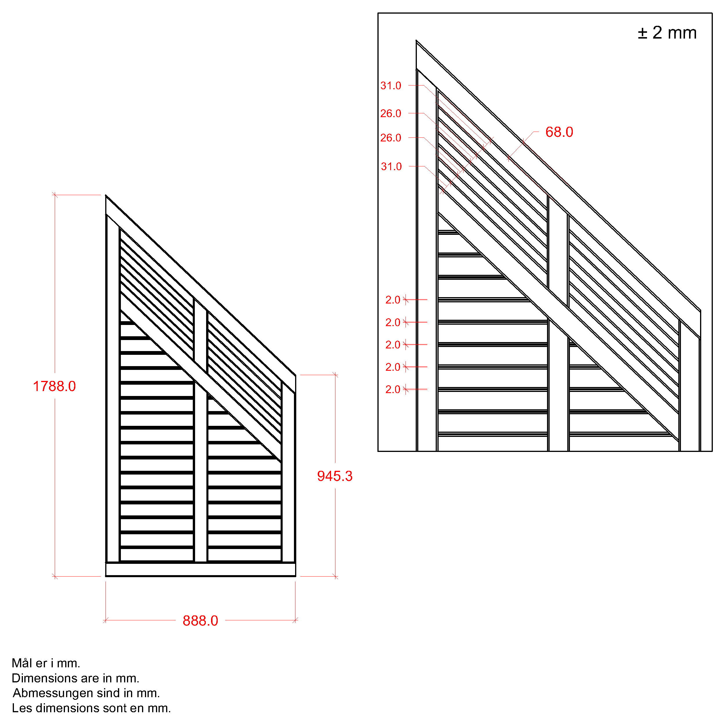 Decora hegn skråelement - 90×180/95 cm - hvid